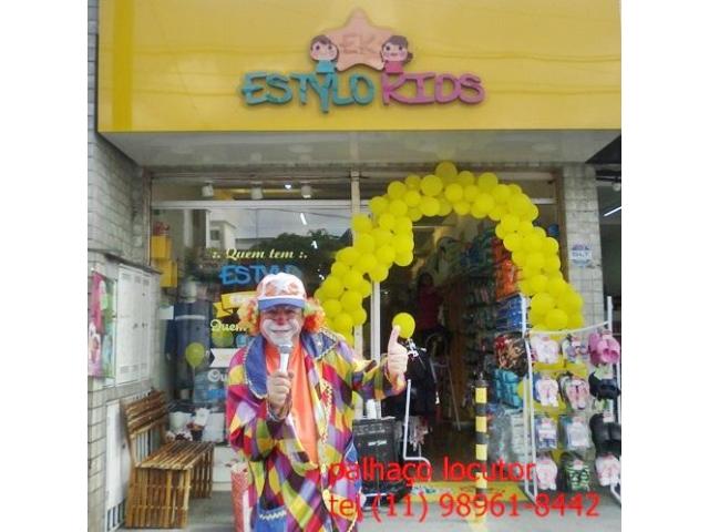 locutor para sua inauguração, ação promocional, ,palhaço locutor, locutor frente de loja (11) 99435-1059
